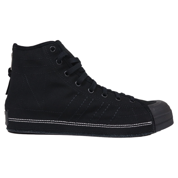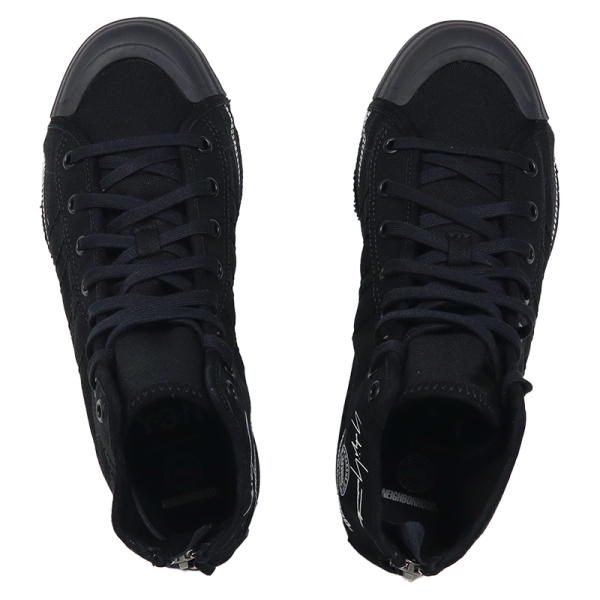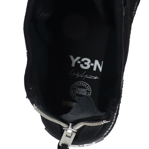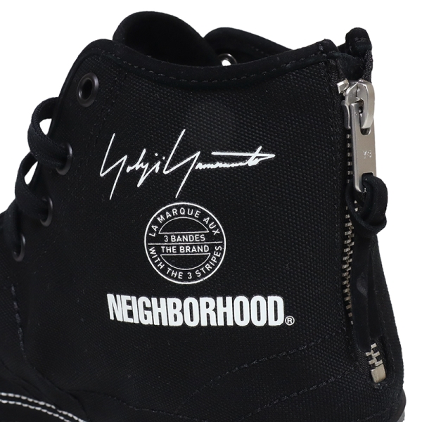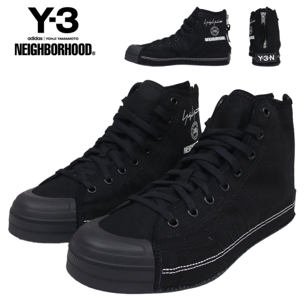 Y-3 ワイスリー から展開する「Y-3 NBHD NIZZA HI」。adidasが持つ専門的なスポーツ技術とデザイナーYOHJI YAMAMOTO(ヨウジヤマモト)氏の洗練されたデザインが融合するブランド「Y3」と、常に新しい試みを提案し続ける日本のブランド「NEIGHBORHOOD」の待望のコラボコレクションから、キャンバス地のアッパーにほつれたエッジを取り入れ、ヨウジヤマモトならではのシグネチャースタイルを表現したハイカットスニーカーが登場。取り外し可能なLightstrikeミッドソールインサートでランニングシューズのような反応性を実現し、ヒールのファスナーで着脱も簡単。内側のスタックロゴやデコステッチ、レザーソックライナー、ラバーヒールパッチの「Y-3-N」など細部までデザイン性を追求したシューズ。