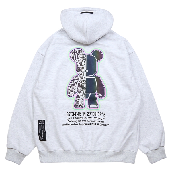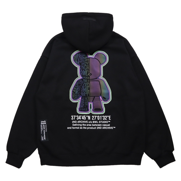 2ND ARCHIVE セカンドアーカイブ から展開する「レインボーに光るリフレクターベアーフーディ」。韓国ソウル発のストリートブランドから、ハリ感のあるプルオーバーパーカーが登場。トレンド感のあるルーズシルエットに、遊び心のあるバックプリントが映えるフーディ。オーロラリフレクター仕様のバックプリントは、フラッシュで撮影するとレインボーに発光!! さらっとした裏地でロングシーズンで使い勝手抜群。ビッグシルエットのワンサイズ展開で、メンズからレディースまでユニセックスでおすすめのトップス。