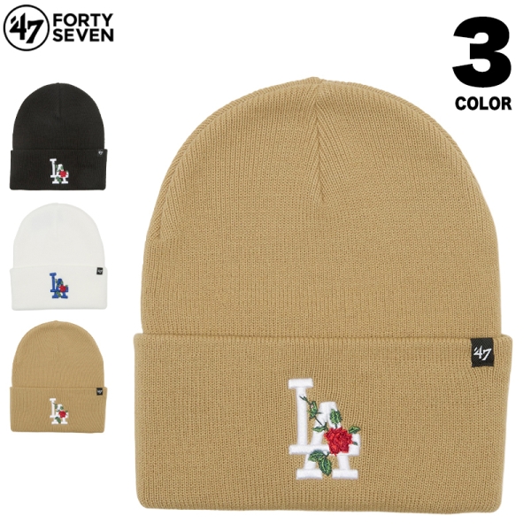 '47 フォーティーセブン から展開する「DODGERS THORN ’47 CUFF KNIT」。フロントの刺繍球団ロゴに薔薇のアイコンをあしらったニット帽が登場。サイドとバックに47ピスネームを配置。柔らかい肌触りでかぶり心地も抜群のビーニー。