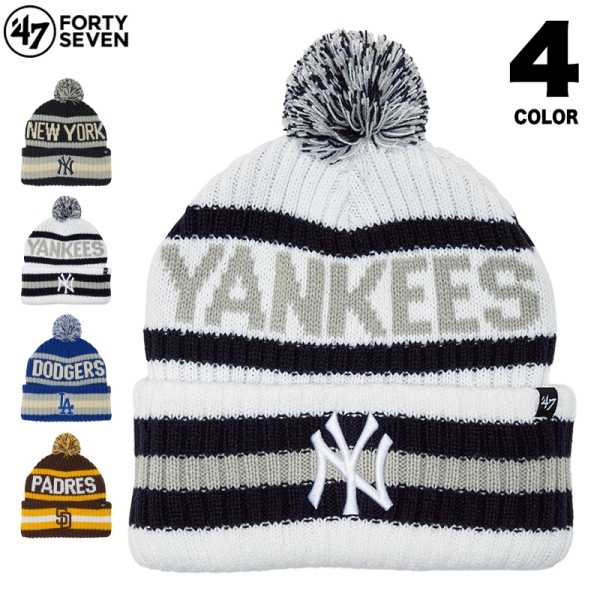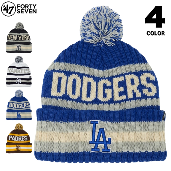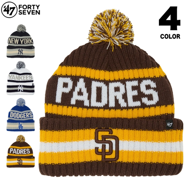 '47 フォーティーセブン から展開する「YANKEESE DODGERS PADRES '47 POM POM CUFF KNIT」。フロントに各チームロゴを刺繍とジャガード編みでデザインしたニット帽が登場。サイドには47ピスネームを装備。ポンポン付きニットキャップで秋冬らしい帽子。裏地はフリース素材で肌触り良く、かぶり心地抜群のビーニー。