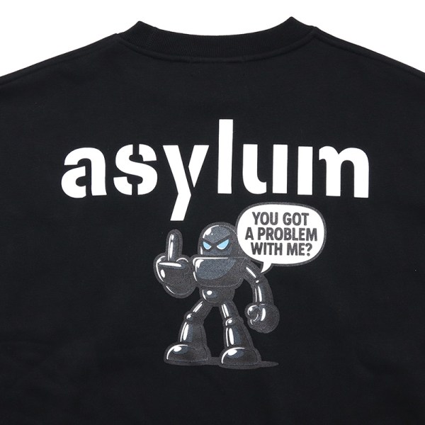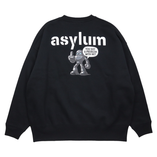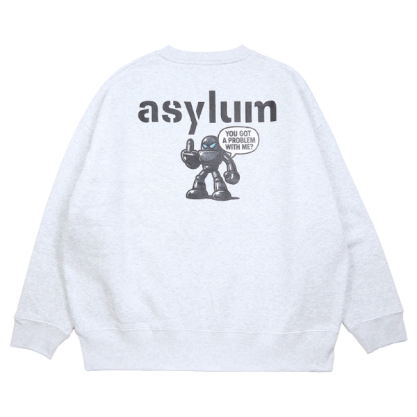 ASYLUM アサイラム から展開する「ASYLUM ORIGINAL BIG SWEAT」。ここでしか手に入らない当店オリジナルブランドのビッグシルエットトレーナーが登場。10オンスの裏起毛素材を使用し暖かく、ゆったりとしたオーバーサイズがトレンドライクな1枚。無地ボディのフロントにはロゴの陰影にこだわった当店だけのオリジナル刺繍をワンポイントで配置。バックプリントにはASYLUMオリジナルアイコンであるロボットグラフィックを大胆に落とし込み、メタリック感のあるロボットが挑発的に立つデザインと、「YOU GOT A PROBLEM WITH ME?」の吹き出しがストリートらしい遊び心と存在感を演出。シンプルなフロントとのギャップがコーデのアクセントになるトップス。