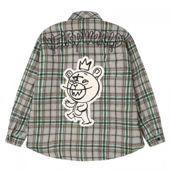 【BEAR刺繍ワッペンが魅力!フランネルシャツジャケット】