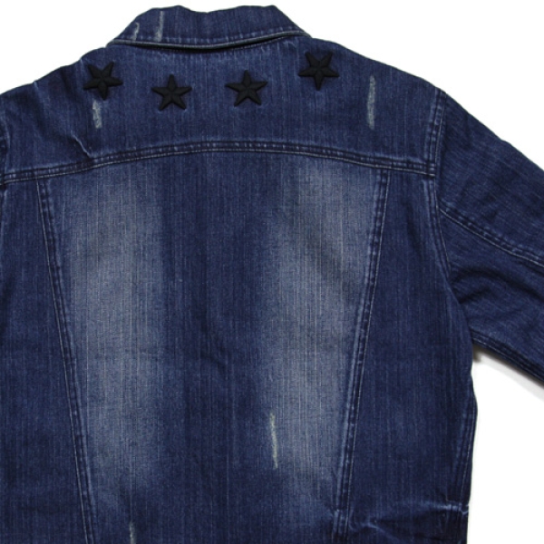 MSGR(メッセンジャー)から展開する「STAR DENIM JACKET INDIGO」。ヴィンテージ加工を施し絶妙なUSED感を表現したMSGRデニムジャケット。ポイントで配置した襟周りの宗教的モチーフのスターアイコン刺繍、各所のミリタリープリント等絶妙なデザインワークが魅力的。無駄を省いたシンプルなデザインに仕上げることで加工感を引き出しているのも特徴。襟部分がジップ式により取り外し可能。