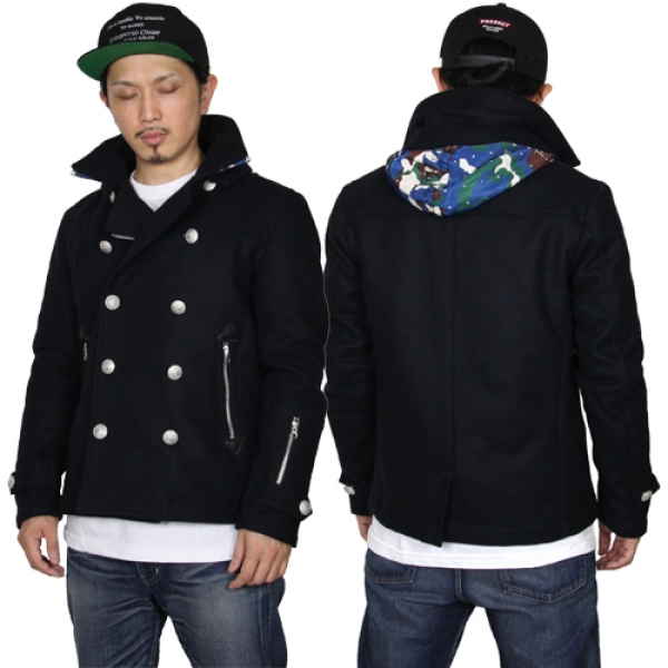 PRODUCT CLASSICS(プロダクトクラシックス)から展開する≪2014 AUTUMN-WINTER COLLECTION≫よりPRODUCT CLASSICS Pコート!衿裏にオリジナルカモ柄フードを収納したディティールの上質ヘビーメルトン素材PRODUCT CLASSICS Pコート。各所に配置されたオリジナルゴールドボタンで更に高級感を演出!!