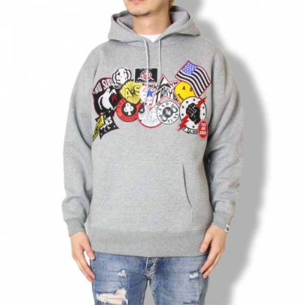 ANDSUNS(アンドサンズ)から展開する「SQUAD SUNS PULLOVER AS186303」。ANDSUNS15周年を記念し15種類のワッペンがフロント全面に配置された裏起毛プルオーバーパーカー。