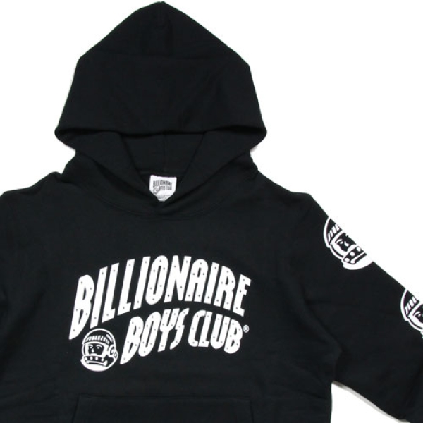 BILLIONAIRE BOYS CLUB(ビリオネアボーイズクラブ)から展開する「NEW CURVE LOGO HOODIE BBCJP16K024」。NEWヘルメットロゴを絡めたアーチロゴが圧倒的な存在感を放つBILLIONAIRE BOYS CLUBプルフーディ。両袖には連続NEWヘルメットロゴ。