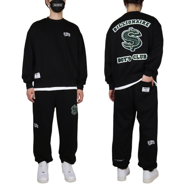 BILLIONAIRE BOYS CLUB ビリオネアボーイズクラブ から展開する「SWEATSHIRT D&D SWEATPANTS DOLLARS SETUP」。ストリートとラグジュアリーを融合させたブランドBBCからスウェットセットアップが登場。バックのサガラ刺繍が映えるクルーネックスウェットと、ストリートムードを引き立てるスウェットジョガーパンツがセットアップになったアイテム。右肩やふくらはぎ部分にさりげなくメッセージを落とし込み、シンプルながら細部までこだわりを感じるデザイン。程よくゆとりのあるシルエットと裏毛スウェット素材により、デイリーユースに最適。スウェットパンツのウエストは、ゴムとドローコードで快適な履き心地。
