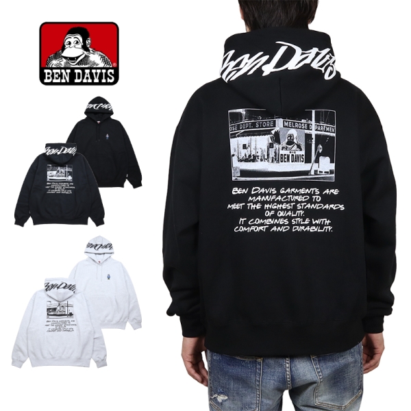 BEN DAVIS ベンデイビス から展開する「GORILLA EMB HOODIE」。アイコニックなゴリラのエンブレムと共にストリートやアメカジファッションで根強い人気を誇るアメリカン・ワークウェア老舗のBEN DAVISより、ヘビーウェイトなプルオーバーパーカーが登場。バックプリントとフード部分のブランドロゴプリントが映えるフーディ。フロントはシンプルにワンポイント刺繍で仕上げ、裏起毛で暖かく、秋冬コーデに使い勝手抜群のトップス。