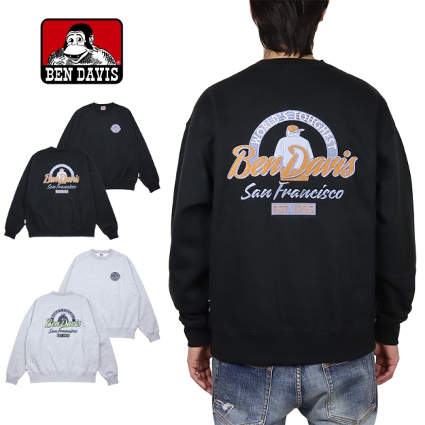 BEN DAVIS ベンデイビス から展開する「BD SCRIPT EMB CREW」。アイコニックなゴリラのエンブレムと共にストリートやアメカジファッションで根強い人気を誇るアメリカン・ワークウェア老舗のBEN DAVISより、ヘビーウェイトなクルーネックスウェットが登場。フロントのブランドサークルロゴ、背面のレトロアメリカンなロゴグラフィック共に贅沢に刺繍で落とし込んだデザイン。裏起毛で暖かく、秋冬コーデに使い勝手抜群のトップス。