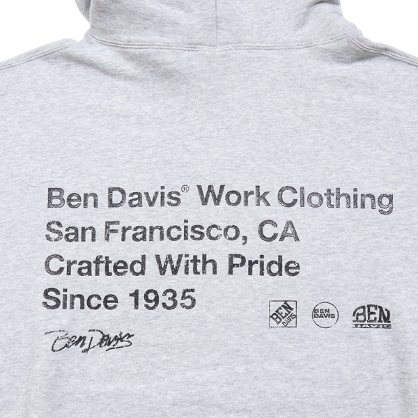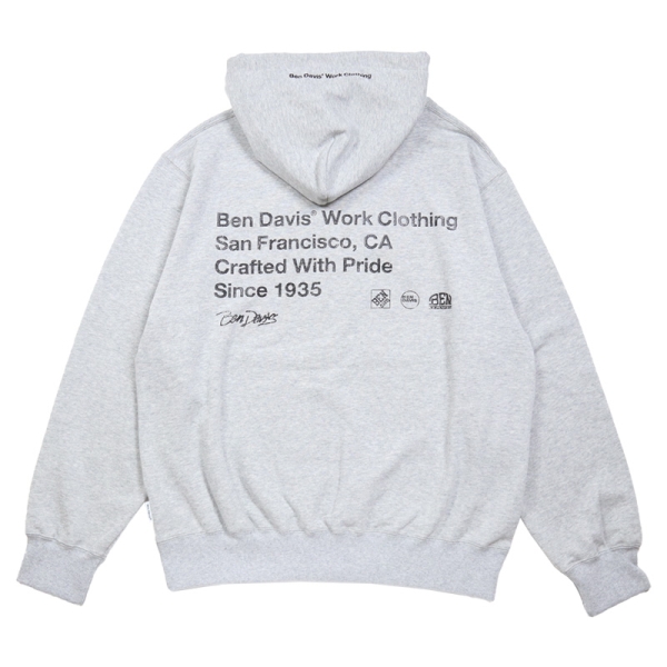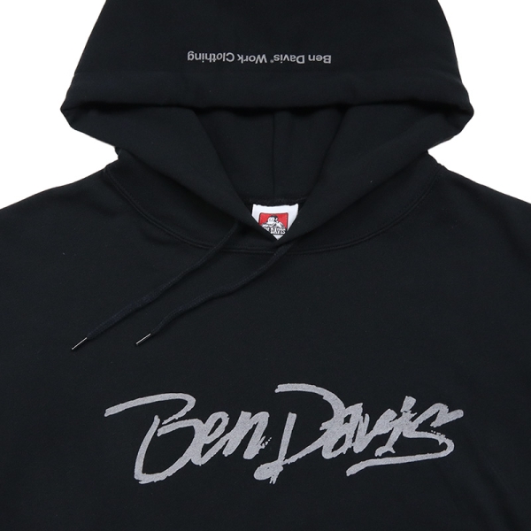BEN DAVIS ベンデイビス から展開する「ATTENTION URAKE HOODIE」。アイコニックなゴリラのエンブレムと共にストリートやアメカジファッションで根強い人気を誇るアメリカン・ワークウェア老舗のBEN DAVISより、プルオーバーパーカーが登場。フロントのブランドロゴ、フード部分、バックプリントをすべてリフレクタープリントで落とし込んだフーディ。裏毛で肌触り良く、秋冬から春先までロングシーズンで使い勝手の良いトップス。
