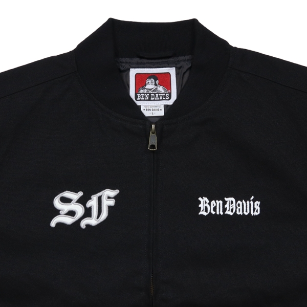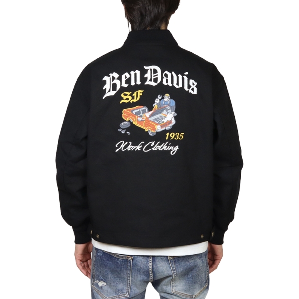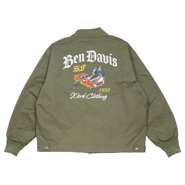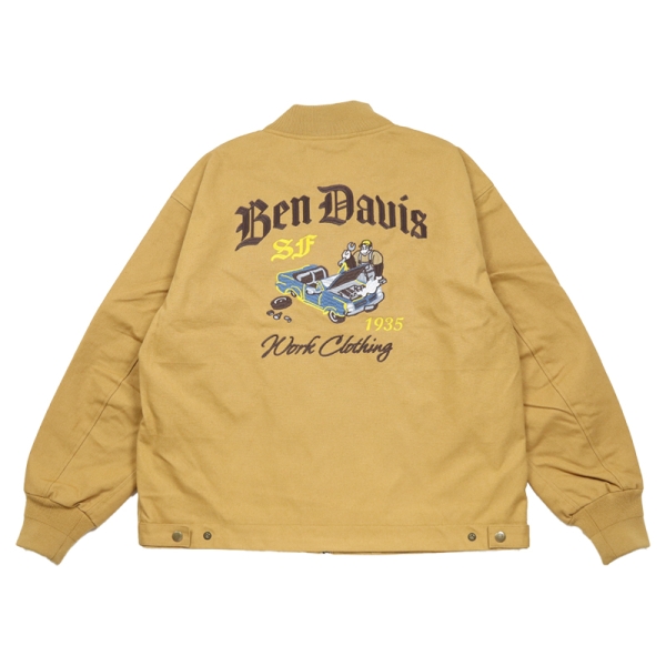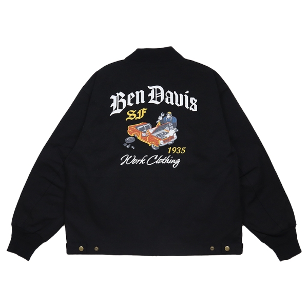 BEN DAVIS ベンデイビス から展開する「MECHANIC EMB RIBBED JACKET」。アイコニックなゴリラのエンブレムと共にストリートやアメカジファッションで根強い人気を誇るアメリカン・ワークウェア老舗のBEN DAVISより、背面の刺繍アートワークが魅力のブルゾンが登場。タフなコットンダック生地にヴィンテージの風合いを加えたアメリカンスタイルなアウター。フロントには刺繍ブランドロゴをワンポイントで添えアクセントに。どんなコーデにも合わせやすく、秋冬から春先まで大活躍間違いなし。