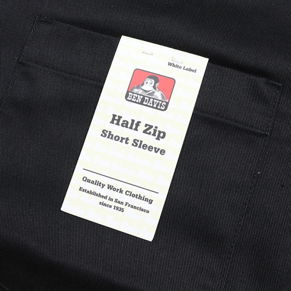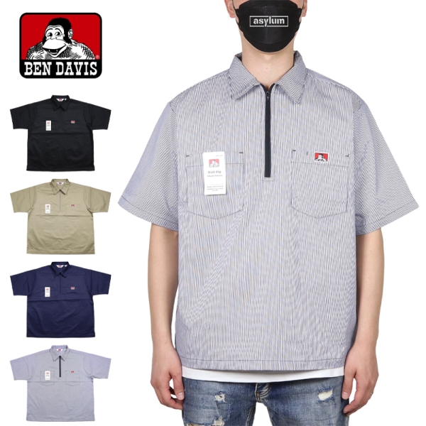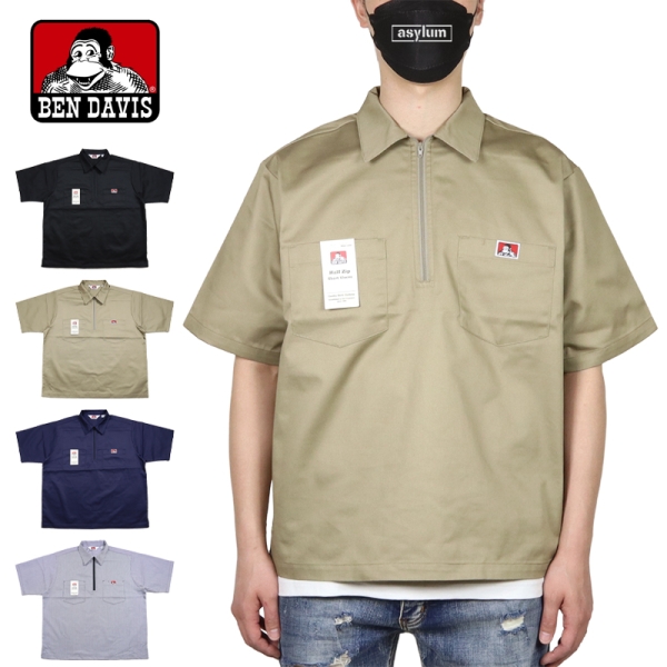 BEN DAVIS ベンデイビス から展開する「1/2 ZIP S/S SHIRT」。アイコニックなゴリラのエンブレムと共にストリートやアメカジファッションで根強い人気を誇るアメリカン・ワークウェア老舗のBEN DAVISより、ブランドの代名詞でもあるハーフジップシャツが登場。左胸ポケットにワンポントで配置されたゴリラのモチーフがアクセントになったトップス。
