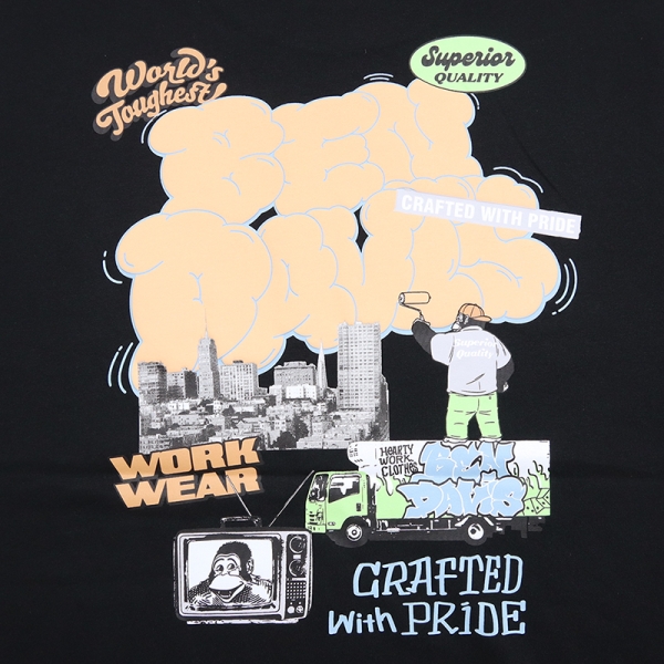 BEN DAVIS ベンデイビス から展開する「OVERLAP COOL TEE」。アイコニックなゴリラのエンブレムと共にストリートやアメカジファッションで根強い人気を誇るアメリカン・ワークウェア老舗のBEN DAVISより、ひんやりと気持ちいい半袖Tシャツが登場。昨シーズンよりも冷感度合をアップさせるよう改良した裏面接触冷感プレーティング天竺素材。フロントのワンポイントプリントと大胆なバックプリントが効いたデザイン。ゆったりとしたサイズ感のビッグシルエットで、メンズからレディースまでおすすめのトップス。
