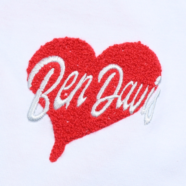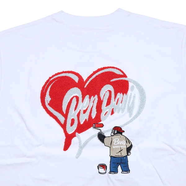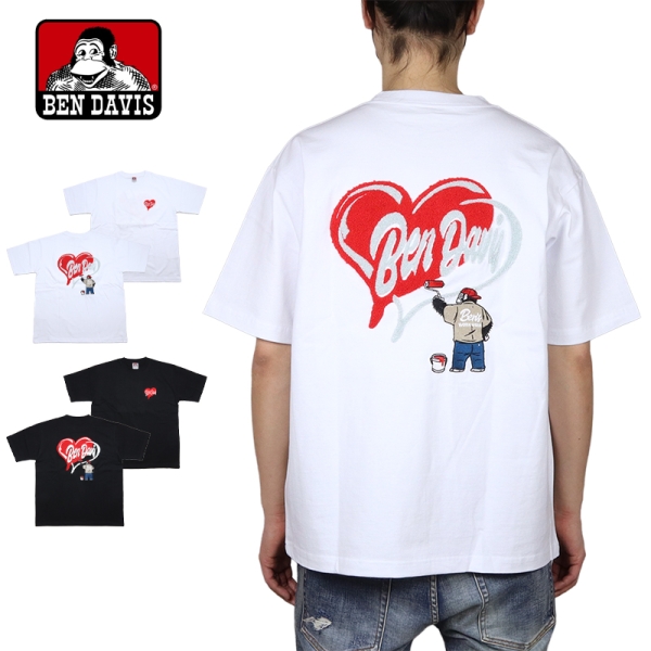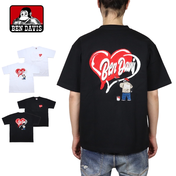 BEN DAVIS ベンデイビス から展開する「HEART CHENILLE TEE」。アイコニックなゴリラのエンブレムと共にストリートやアメカジファッションで根強い人気を誇るアメリカン・ワークウェア老舗のBEN DAVISより、半袖Tシャツが登場。左胸にハートのサガラ刺繍、背面にはハートモチーフとゴリラをサガラ刺繍と振り刺繍の豪華仕様で落とし込んだデザイン。ゆったりとしたサイズ感のビッグシルエット。ほどよく厚手の6.9ozヘビーウエイト、綿100%で使い勝手良く、メンズからレディースまでおすすめのトップス。