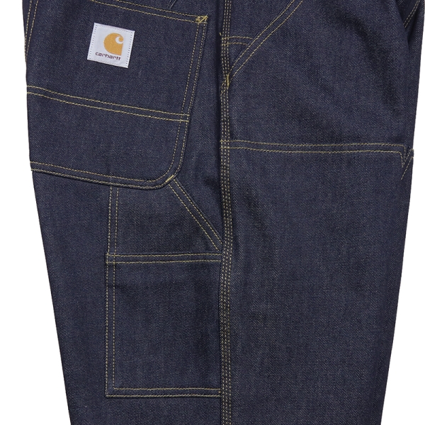 Carhartt WIP カーハート ワークインプログレス から展開する「DOUBLE KNEE PANT」。ワークウェアとしての上質なクオリティーを保ちながら、洗練されたシルエットにアップデートされ世界中で愛されているカーハートのヨーロッパライン「Carhartt WIP」よりペインターデニムパンツが登場。リラックス・ストレートフィットのノンウォッシュリジッドデニム。スタンダードなデザインでありながら、やや太めのシルエットでトレンドも押さえたダブルニーパンツ。ワークブランドならではの強度とワークテイストを醸し出し、バックポケット部分にブランドロゴパッチを配置したシンプルなデザイン。オールシーズン使いやすくワードローブに是非押さえておきたいジーンズ。