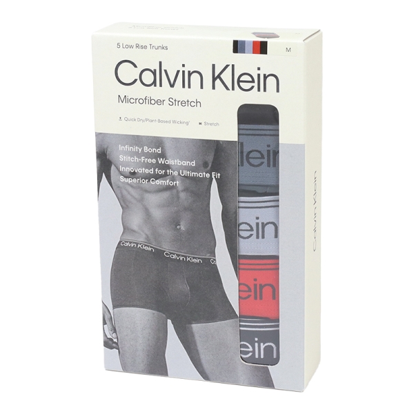 CALVIN KLEIN カルバンクライン から展開する「MICROFIBER STRETCH LOW RISE 5PK」。世界でも有数の人気ブランドの地位を確立しているCKより、圧倒的人気を誇るアンダーウェアシリーズのローライズタイプのボクサーパンツが登場!無地ボディのウエストベルトにブランドロゴを落とし込んだシンプルなデザイン。洗練されたシルエットと、見せることを前提にデザインされたウエストゴムが腰回りをすっきりと細見えさせスマートな印象に。ローライズかつ絶妙な丈感と、立体設定のフロント部分が締め付けを軽減し可動部を邪魔せずきつすぎない履き心地を実現。さらっとしたポリエステル素材を採用し、通気性・ストレッチ性を兼ね備え、デイリーユースからスポーツなどのアクティブシーンまで快適にサポート。お得な5個セット。ボックス入りで父の日や誕生日プレゼントなどギフトにも最適。