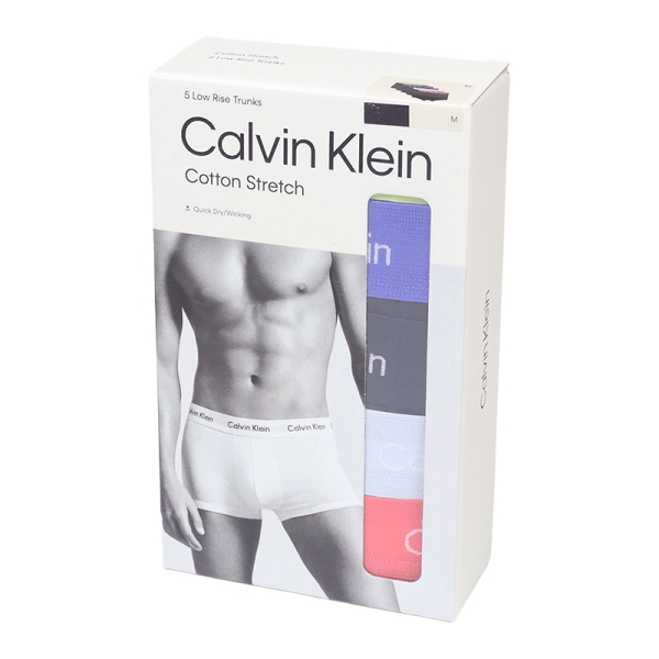 CALVIN KLEIN カルバンクライン から展開する「COTTON STRETCH 5PK LOW RISE TRUNK」。世界でも有数の人気ブランドの地位を確立しているCKより、圧倒的人気を誇るアンダーウェアシリーズ、ローライズタイプのボクサーパンツが登場!無地トランクスのウエストベルトにブランドロゴを落とし込んだシンプルなデザイン。ローライズの洗練されたシルエットと、見せることを前提にデザインされたウエストゴムが腰回りをすっきりと細見えさせスマートな印象に。絶妙な丈感と、立体設定のフロント部分が締め付けを軽減し可動部を邪魔せずきつすぎない履き心地を実現。やわらかい綿素材を採用し、通気性・ストレッチ性を兼ね備え、デイリーユースからスポーツなどのアクティブシーンまで快適にサポート。お得な5個セット。ボックス入りで父の日や誕生日プレゼントなどギフトにも最適。