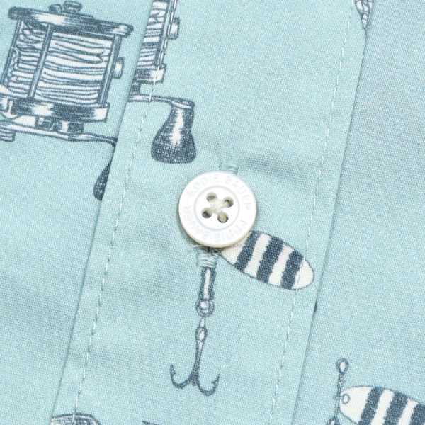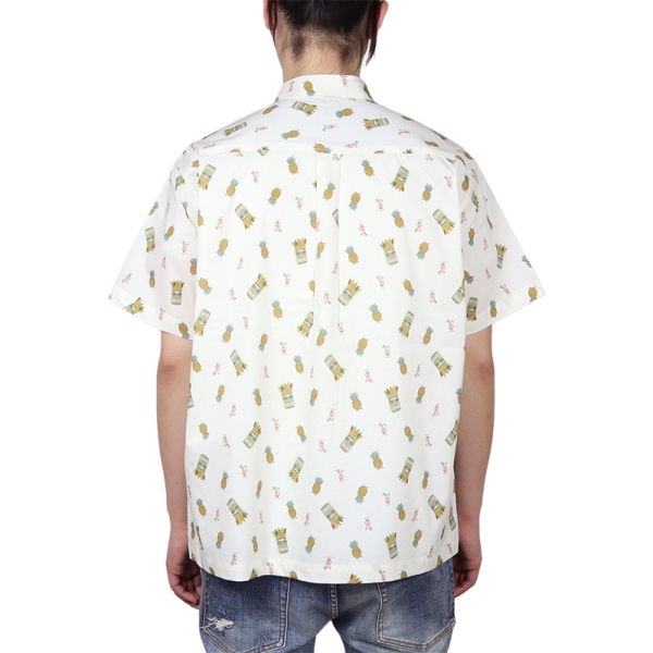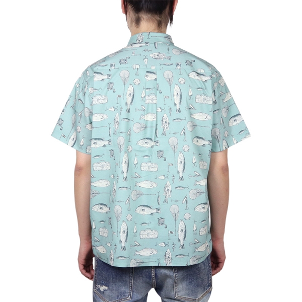 【ストレッチが効いた総柄ボタンダウンシャツ】