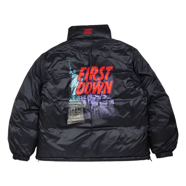 FIRST DOWN ファーストダウン から展開する「バブルダウンジャケット DISCIPLE GRAPHIX」。1980年代にアメリカで生まれ、高い機能性と優れたデザインでアウトドア・タウンユースで支持され、NYを象徴するダウンジャケットブランドとなったファーストダウン。ブランドを象徴する軽量かつ高い防寒性を誇るバブルダウンジャケットに、アーティスト「DISCIPLE GRAPHIX」のアートワークをバックプリントに落とし込んだコラボレーションモデル。上質なダウン90%とフェザー10%を贅沢に使用し、真冬の寒さからしっかり防寒。ウインターキャンプやスノーシーンにも頼れるハイスペックアウターでありながら、着ぶくれしないシルエットと、気分に合わせて定番の無地面とインパクト抜群のグラフィック面を変えられるリバーシブル仕様で、普段の秋冬コーデにもおすすめのダウンジャケット。