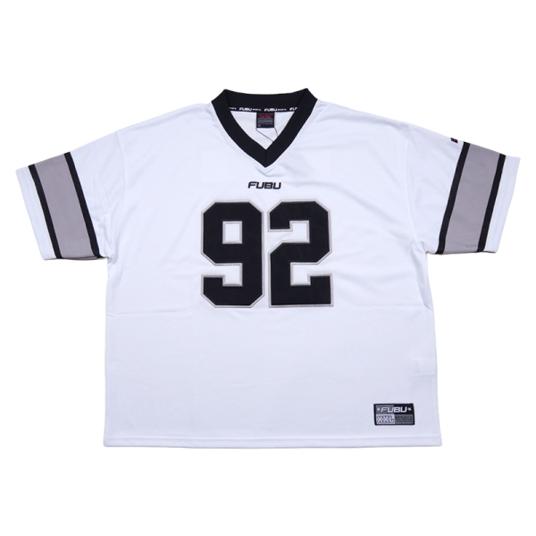 FUBU フブ から展開する「GAME SHIRTS」。アメリカの代表的なストリートブランドFUBUからコンテンポラリーとクラシックが融合した半袖のゲームシャツが登場。軽量で動きやすいポリエステルジャージ素材を使用。通気性が良く、さらっとした着心地。汗をかいても乾きやすいため、ダンスやスポーツなどのアクティブシーンにも最適。フロントと背面に大胆に「92」ナンバリングとブランドロゴを配置したデザイン。ストリートコーデやスポーツミックススタイルに映える存在感のあるトップス。
