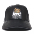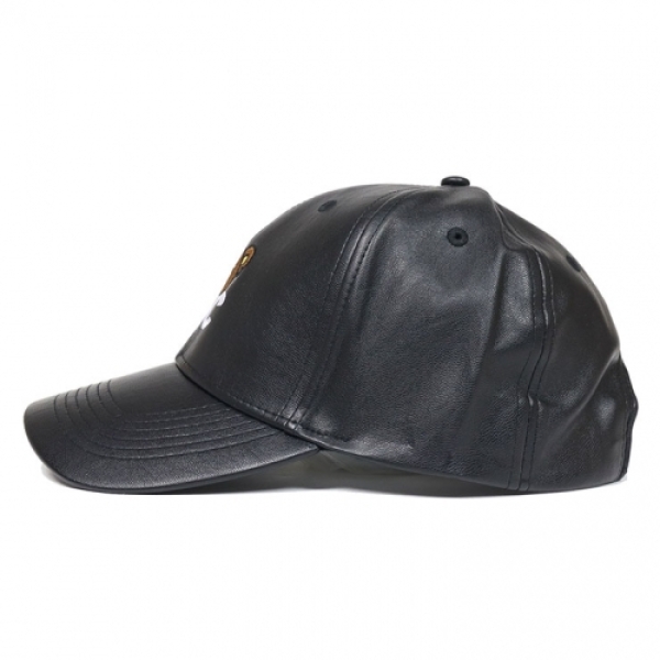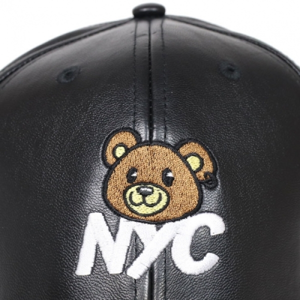 【くまの刺繍がかわいいアクセント!レザー素材の6パネルキャップ】