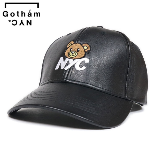 GOTHAM NYC ゴッサム ニューヨークから展開する「NYCBEAR-PCP GN879」。合皮素材の6パネルボディにブランドロゴとクマの刺繍が添えられたキャップが登場!カジュアルなキャップもフェイクレザー素材ならクールな印象に。バックのアジャスターでサイズ調整可能。