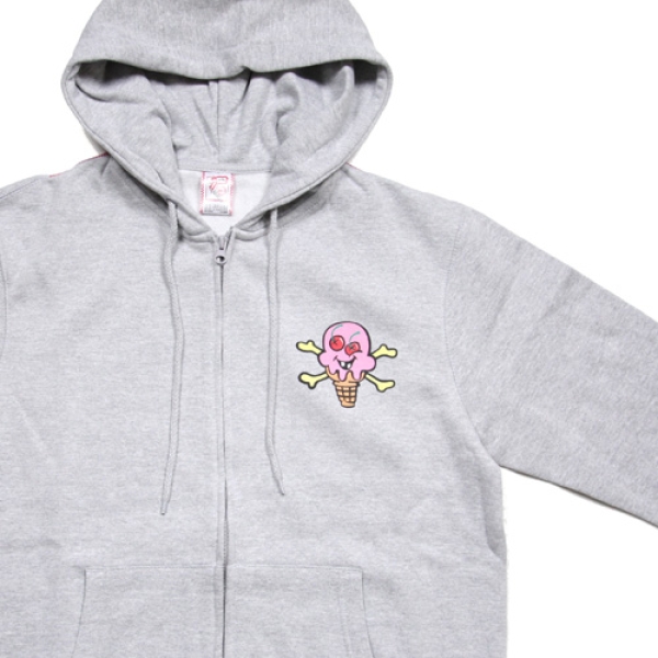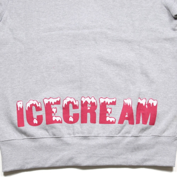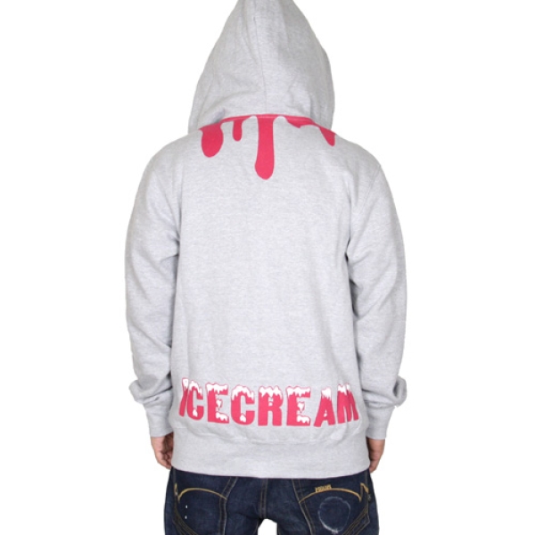 ICE CREAM(アイスクリーム)から≪2013 FALLコレクション≫よりICE CREAMジップパーカー登場!!胸元にお馴染みのコミカルポップに描かれたチェリーオンアイスクリームキャラ、バック下部にはドリップ寸前ICE CREAMロゴ、更にフードからしたたるドリップデザインがブランドらしさ全快のICE CREAMジップパーカー。
