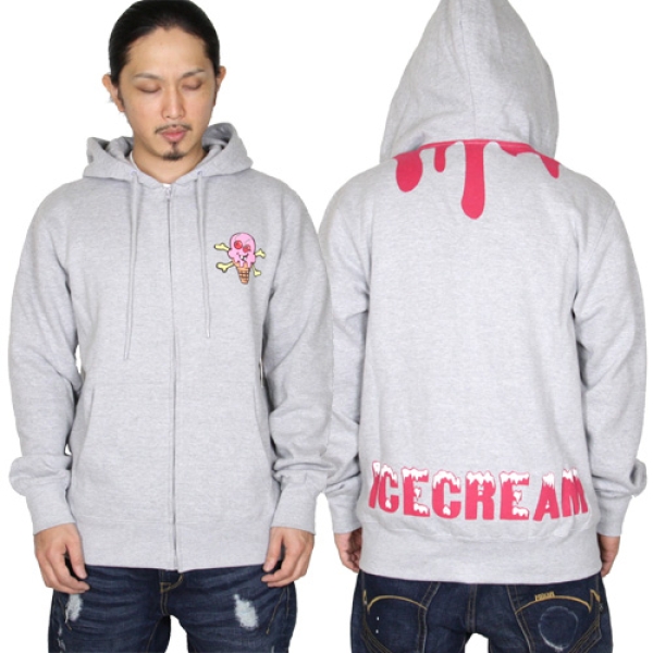 【ICE CREAM全快のグラフィックでポップに彩るデザインパーカー】