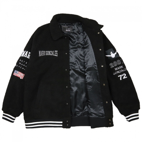 【刺繍ロゴが映える!スタジャンデザインのボアジャケット】