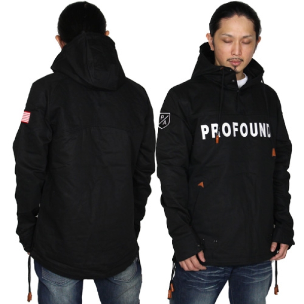 新取扱いブランドPROFOUND AESTHETIC(プロファウンド・エステティック)から展開する≪2014 FALL COLLECTION≫よりPROFOUND AESTHETICフードジャケットが入荷。フロントにはPROFOUNDロゴ、両袖にPROFOUND AESTHETICエンブレム、オリジナルフラッグを配置したミリタリーテイスト漂うPROFOUND AESTHETICフードジャケット。クラシックなデザインに機能面や旬なエッセンスを詰め込んだライトアウター。