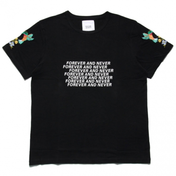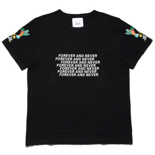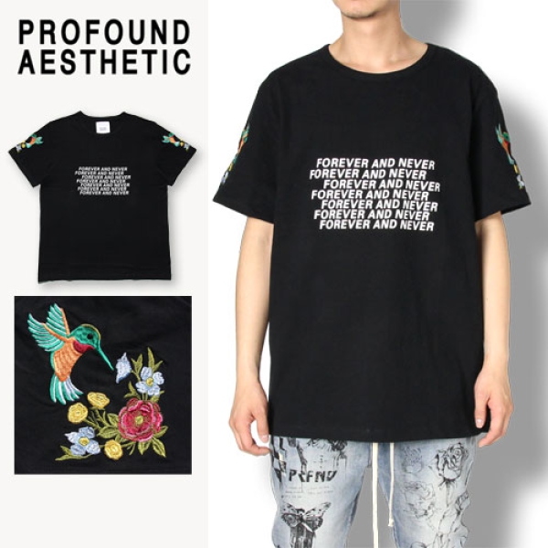 PROFOUND AESTHETIC(プロファウンド・エステティック)から展開する「FOREVER AND NEVER SS18-032」。両袖には細部まで拘った刺繍を施し、フロントには"FOREVER AND NEVER"の文字を施したハイクオリティメッセージTEE。ボディマテリアルには、アメリカセレブも納得の上質コットンを使用し着心地抜群。