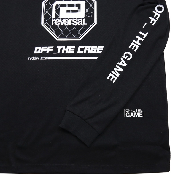 reversal リバーサル から展開する「OFF_THE CAGE REFLECTIVE LONG SLEEVE TEE」。スポーツカジュアルブランド「OFF_THE GAME」とrvddwのコラボコレクション「OFF_THE CAGE」からロンTが登場。世界最大級のスポーツライセンス企業 Fanatics Inc. が手掛ける「OFF_THE GAME」は、プロアスリートの要望に応えた高機能素材と、デザイン性の高い大胆なロゴデザインを融合するブランド。本コレクションもそのDNAを継承し、コットンライクな印象ながらも吸水速乾に優れたTシャツ。コラボを象徴するフロントのケージブランドロゴとバックプリントのリフレクターラインが魅力的。スポーツやトレーニングなどのアクティブシーンからデイリーコーデまで活躍するおすすめトップス。