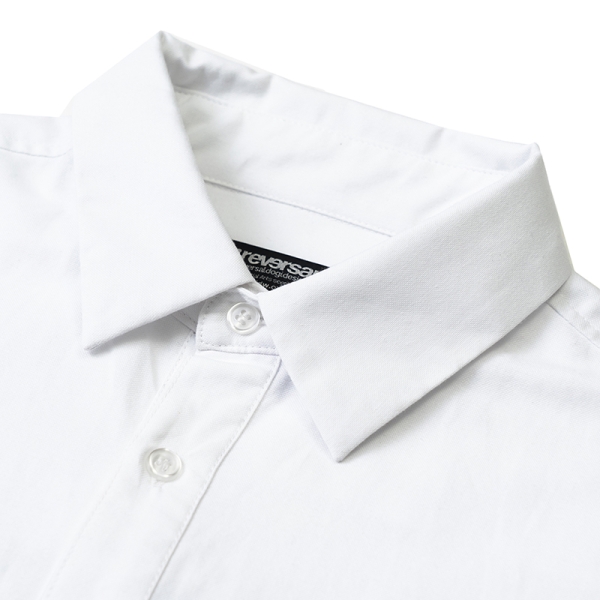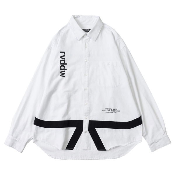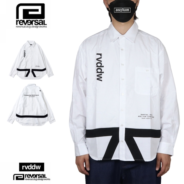reversal リバーサル から展開する「BIG SILHOUETTE OBI SHIRTS」。上質なオックス生地で作成されたワイドシルエットの長袖シャツが登場。武道メーカーISAMIのアイデンティティ感じる腰部分に柔術帯を落とし込んだ遊び心あふれるデザイン。どの角度から見ても道着を着ている様に見えるPOPなトップスでありながら、シャツのモードな雰囲気も合わさるrvddwらしい仕上がり。