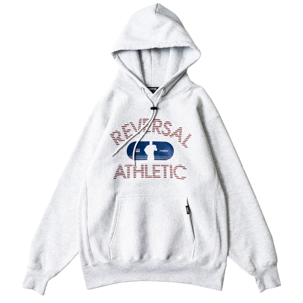 reversal リバーサル から展開する「reversal ATHLETIC SWEAT HOODIE」。カレッジ風デザインの12.0ozプルオーバーパーカーが登場。架空のトレーニングスクール「rvddwアカデミー」のスクール生が着用するカレッジウェアをイメージしてフロントにロゴを落とし込んだフーディー。12.0ozのヘビーウエイトコットン混のボディを使用し、裏起毛で暖かく生地感も良し。ヘビロテ間違いなしのトップス。