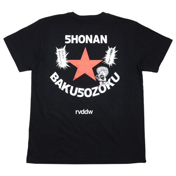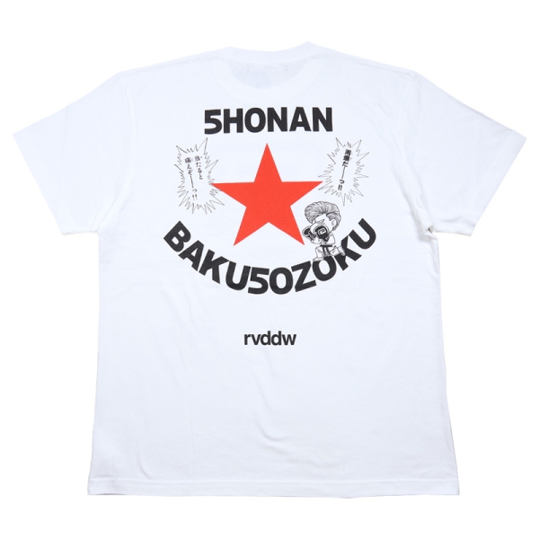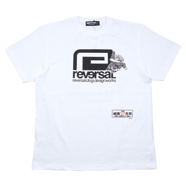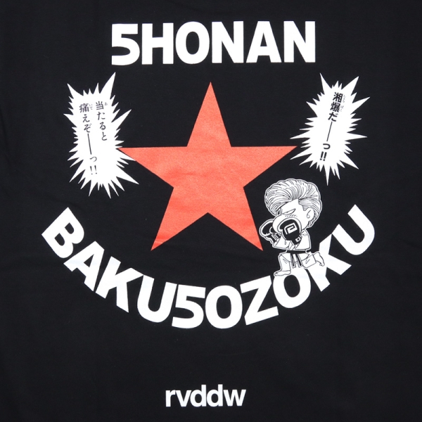 reversal リバーサル から展開する「湘南爆走族×rvddw ITEEZO TEE」。湘爆ファン必見!! ブランドお馴染みビッグマークロゴと共にコミカルタッチの江口をプリントグラフィックに落とし込んだクルーネックTシャツが登場。バックプリントは湘爆フラッグロゴに、今回のために吉田聡先生が書き下ろしたデフォルメ江口の「当たると痛えぞ」を配置し、コラボ感あふれるデザイン。5.6oz、綿100%で使い勝手良く、インパクト抜群のトップス。