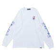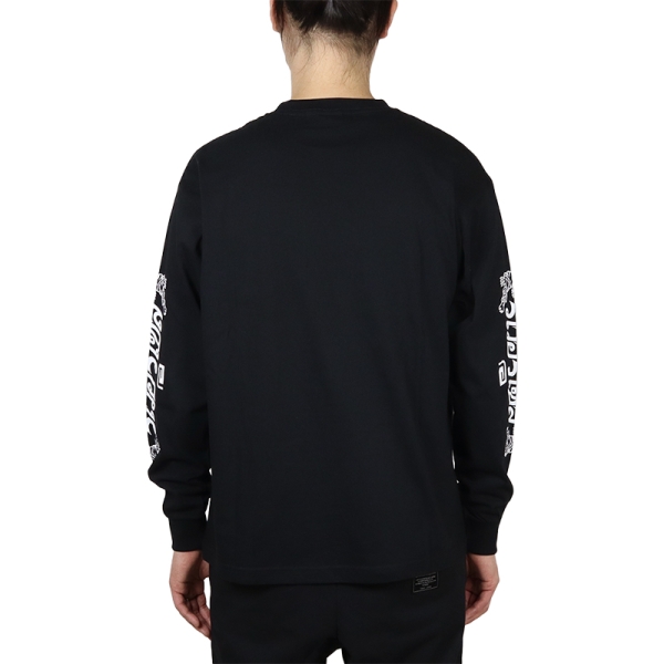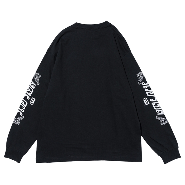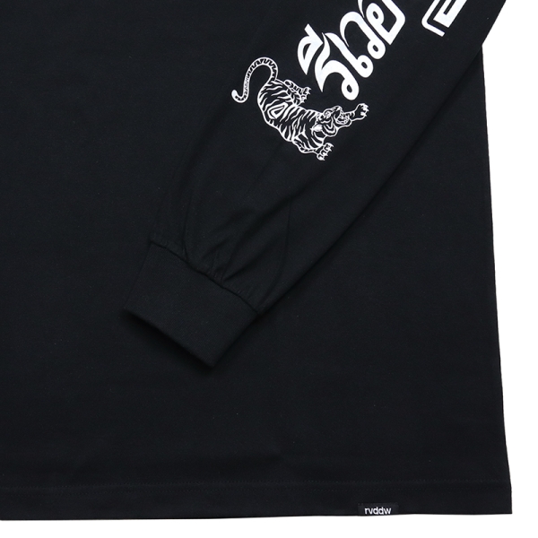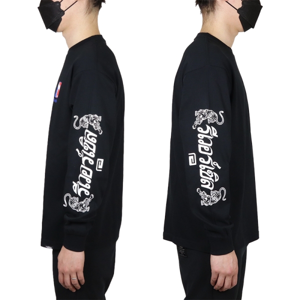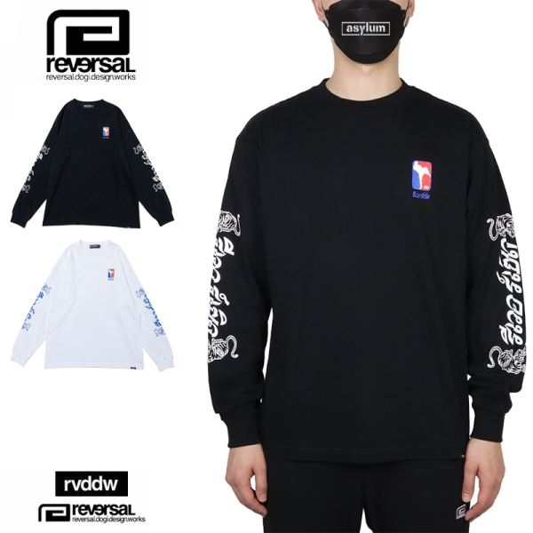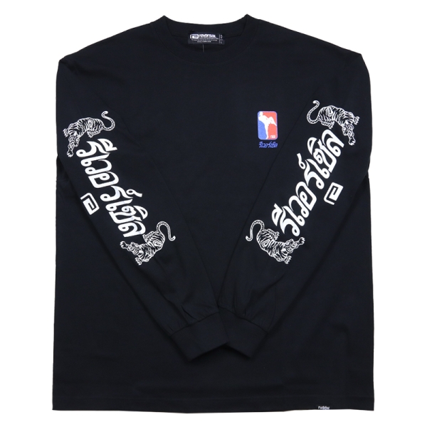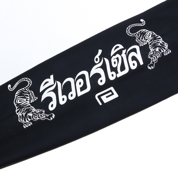 reversal リバーサル から展開する「THAI COTTON LONG SLEEVE」。タイ語でリバーサルと書かれたプリントを双虎と共にスリーブに落とし込んだロンTが登場。フロントにはタイ国旗をイメージしたカラーのグラフィックをワンポイントで配置。袖にデザインがあるため、Tシャツやベストなどとのレイヤードコーデにもおすすめ。6.2oz、綿100%で使い勝手良いトップス。