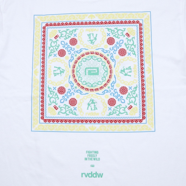 reversal リバーサル から展開する「BOKH BIG MARK COTTON TEE」。モンゴルに古来より伝わる伝統的な立技組技系格闘技「BOKH(ブフ)」をモチーフにしたオリジナルパターンをビッグマークロゴに落とし込んだクルーネックTシャツが登場。インパクトあるバックプリントが魅力の半袖スウェットシャツが登場。バックプリントには同柄をスカーフのようにデザイン。6.2oz、綿100%で使い勝手良く、1枚でコーデの主役になるトップス。