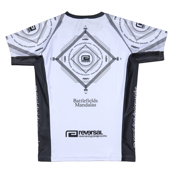 reversal リバーサル から展開する「MANDALAS SHORT RASH GUARD」。OCTAGON/RING/MAT/DOHYO をモチーフにした曼荼羅(Battlefields Mandalas)を配置したデザインのラッシュガードが登場。4WAYストレッチ素材を採用し、無駄なくフィットすることで筋肉を包み込み余計な振動を抑え、かつ動きを妨げずにサポート。吸汗速乾機能が汗を素早く吸収し乾き、ベタつきを抑える高機能な半袖Tシャツで、ジムワークやトレーニングにもおすすめのトップス。