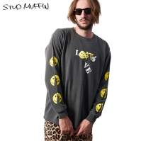 TC裏毛起毛 グラフィティプリント& 手編みスマイルワッペン スエットシャツ 424-02737