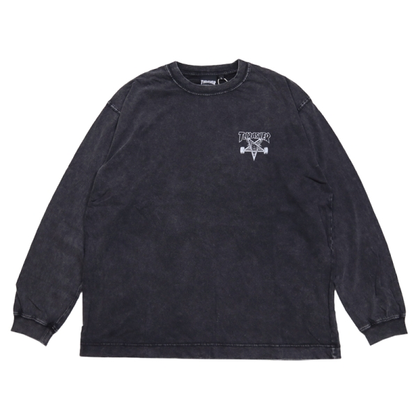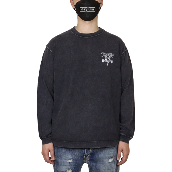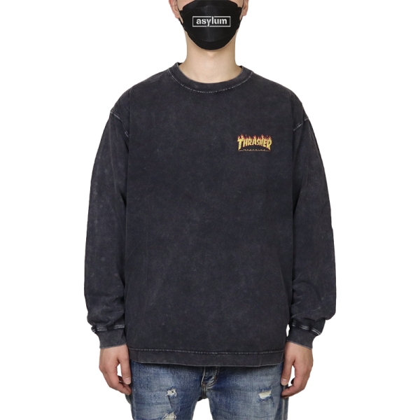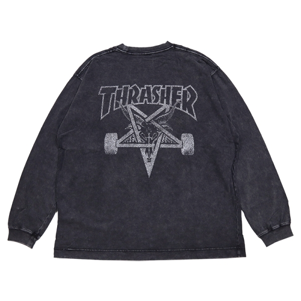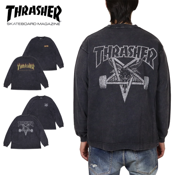 THRASHER スラッシャー から展開する「ビッグシルエット L/S TEE」。ブランドロゴグラフィックをバックプリントに大胆に落とし込んだロンTが登場。ボディに施されたパウダーブリーチ加工により独特のムラ感と、かすれたグラフィックプリントが合わさり、ヴィンテージ感を楽しめるデザイン。ゆったりとしたビッグシルエットのサイズ感。綿100%でロングシーズンで使い勝手の良いトップス。