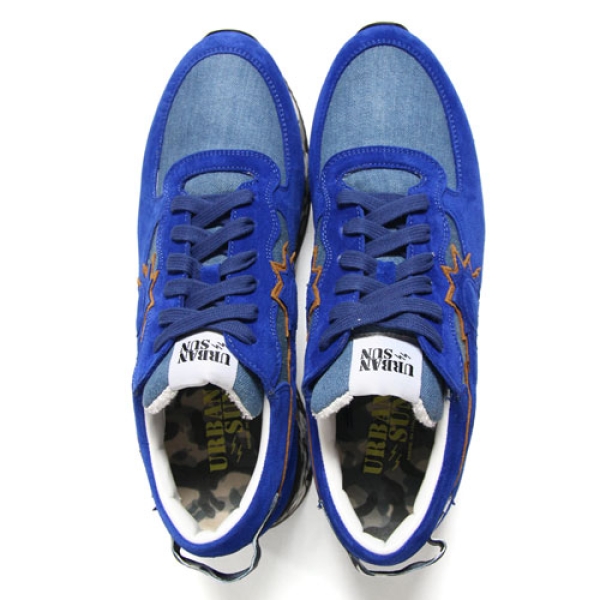 URBAN SUN(アーバンサン)から展開する「ANDRE121 BLUE」。90年代のストリートファッションをイメージした100%イタリア産スニーカー。全体のボディを目を惹くブルーでデザインし、ソール、プルストラップにホワイトカモを落とし込んだハイセンスな色使いがインパクトを放つ。クッション性のあるインソールは疲労を軽減できる事に加えインヒールで脚長効果も。ディテールや製法にもこだわり、アウトソールには、擦り減りにくく、長く愛用できると定評のある「MARGOM社」のものを使用。ナイロン部分には「Limonta社」のものを採用。全ての製造過程をイタリアで行う拘りの逸品。