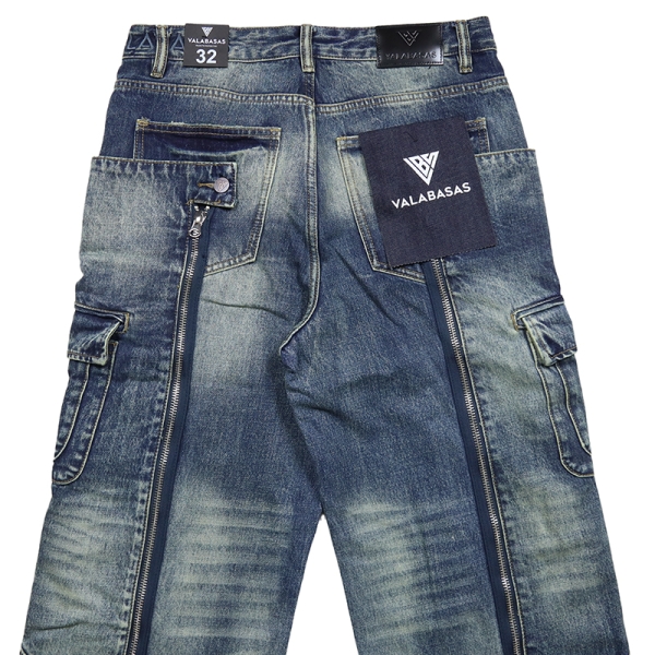 VALABASAS バラバサス から展開する「STOCK BAGGY」。アメリカ発ストリートウェアブランドから、独自のデザインと計算されたシルエットが特徴のデニムパンツが登場。印象的なファスナー使いとカーゴポケットで独特なシルエットが他にはない存在感のワイドパンツ。ブランドロゴチャームと、ネームタグのキーホルダー付き。フロントはボタンフライを採用。左腰部分には刺繍ロゴを落とし込み細部までこだわりを表現。デイリーコーデの主役として、ストリートスタイルに確かな個性をプラスするジーンズ。