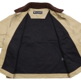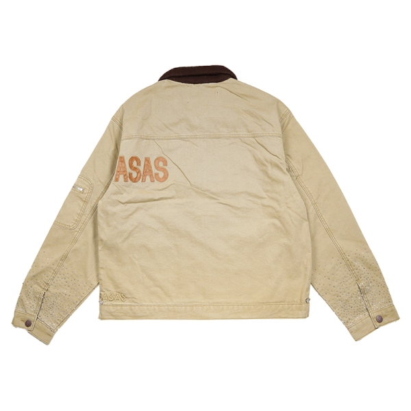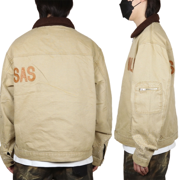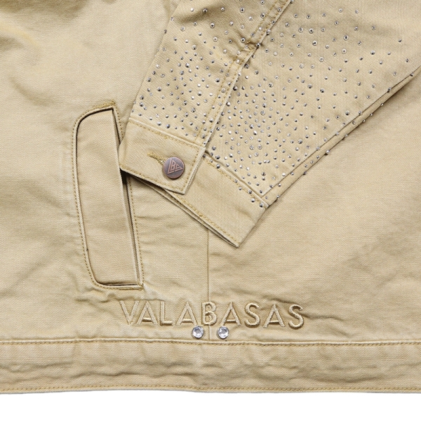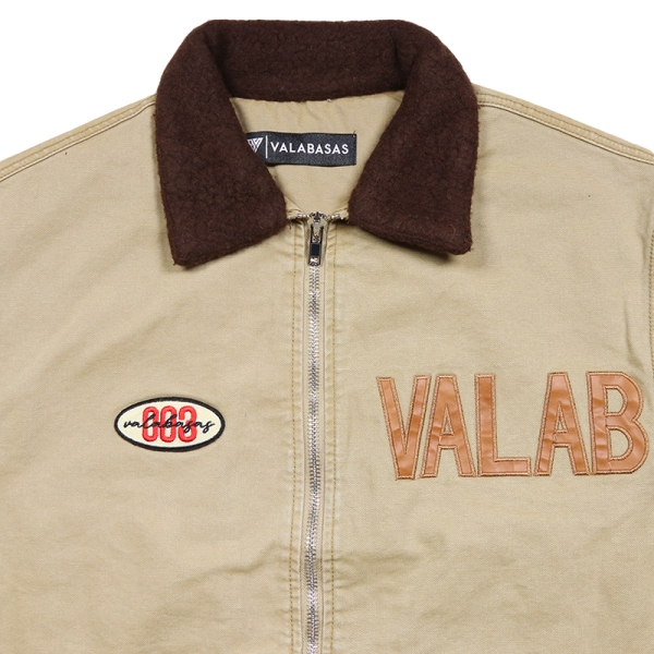VALABASAS バラバサス から展開する「HOPPER KHAKI JACKET」。アメリカ発ストリートウェアブランドから、ワークウェアの耐久性とストリートウェアらしいディテールを融合させたジャケットが登場。ボディはしっかりとしたキャンバス生地を使用、襟はふっくらとしたブラウンのボア素材を使用し、コントラストが映えるデザイン。フロントのブランドロゴワッペン刺繍や、袖口のラインストーンが洗練されたエッジをプラス。ゆったりとしたフィット感とファスナー開閉で使い勝手よく、デイリーコーデの主役として、ストリートスタイルに確かな個性をプラスするアウター。ブランドネームタグのキーホルダー付き。