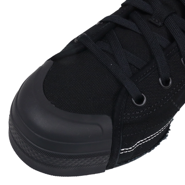Y-3 ワイスリー から展開する「Y-3 NBHD NIZZA HI」。adidasが持つ専門的なスポーツ技術とデザイナーYOHJI YAMAMOTO(ヨウジヤマモト)氏の洗練されたデザインが融合するブランド「Y3」と、常に新しい試みを提案し続ける日本のブランド「NEIGHBORHOOD」の待望のコラボコレクションから、キャンバス地のアッパーにほつれたエッジを取り入れ、ヨウジヤマモトならではのシグネチャースタイルを表現したハイカットスニーカーが登場。取り外し可能なLightstrikeミッドソールインサートでランニングシューズのような反応性を実現し、ヒールのファスナーで着脱も簡単。内側のスタックロゴやデコステッチ、レザーソックライナー、ラバーヒールパッチの「Y-3-N」など細部までデザイン性を追求したシューズ。